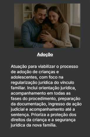 Nosso foco é direito previdenciário, consumidor, família e criminal, com soluções ágeis.